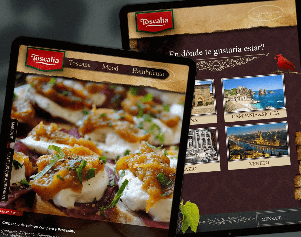 DESARROLLO: Diseño de aplicación nativa para el restaurante, funcionando como un menú interactivo sugiriendo platillos de acuerdo a estado de ánimo y zonas de Italia