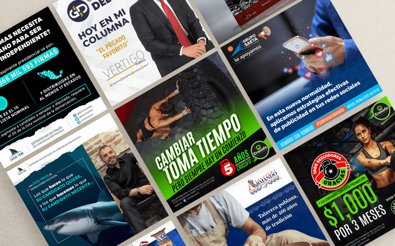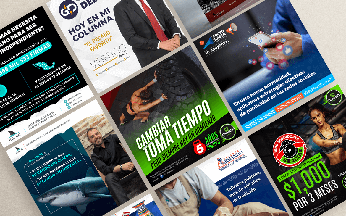 DESARROLLO: Diseño de postales para publicar en las respectivas redes sociales de distintas empresas, marcas, servicios y personajes públicos.